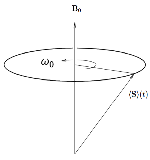 Fig. 1 Spin in a static Magnetic Field B0. Precesses with angular frequency \omega_0