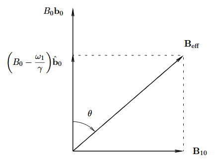 \gamma \mathbf{B_{eff}} = (\omega_0 - \omega_1)\mathbf{\hat{b_0}} + \gamma \mathbf{B_{10}}